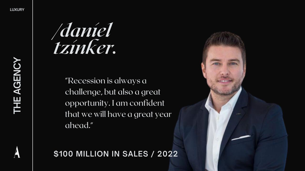 For over ten years, Daniel Tzinker has made a name for himself as a luxury expert in Miami and has been setting records in luxury penthouse sales. In 2022 his his team sold over $200 million in real estate of which his personal sales was above $100 million.