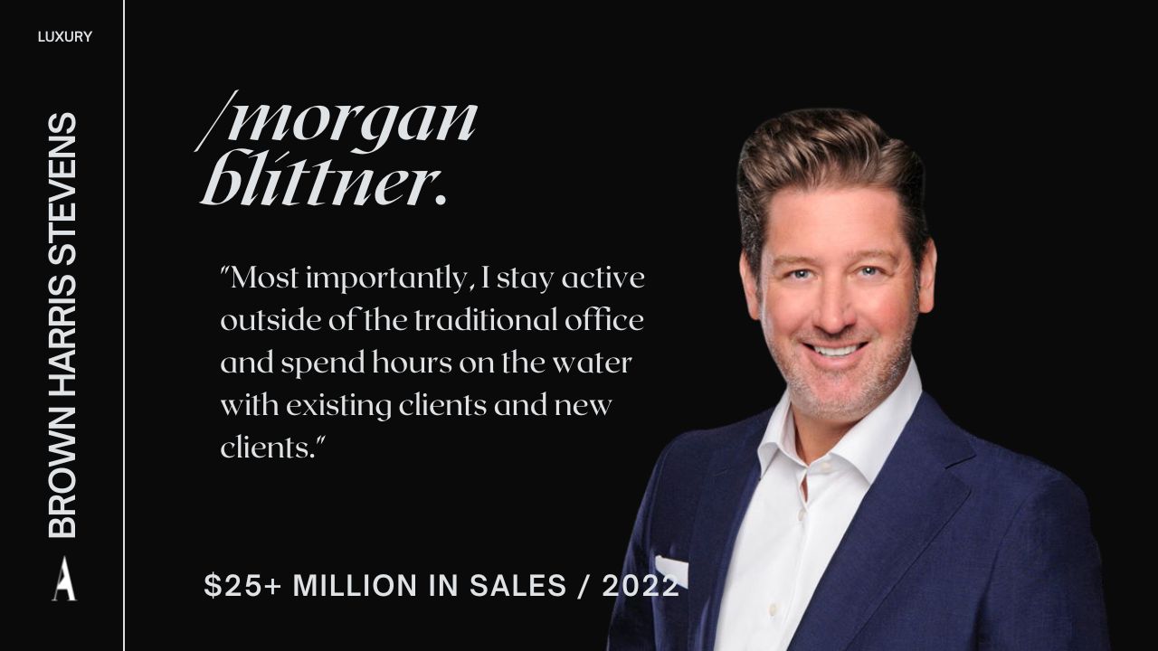 Morgan Blittner became fully active in Miami real estate just 3 years ago and has seen a very successful 2022 closing out just over $25 million in sales. Growing up in New York, Morgan maintains strong relationships with his network up north which contributes to a lot of his success. "Most importantly I stay active outside of the traditional office and spend hours on the water with existing clients and new clients paddle boarding / kitesurfing around Miami which allows me to give them a different view of this amazing city," says Morgan.